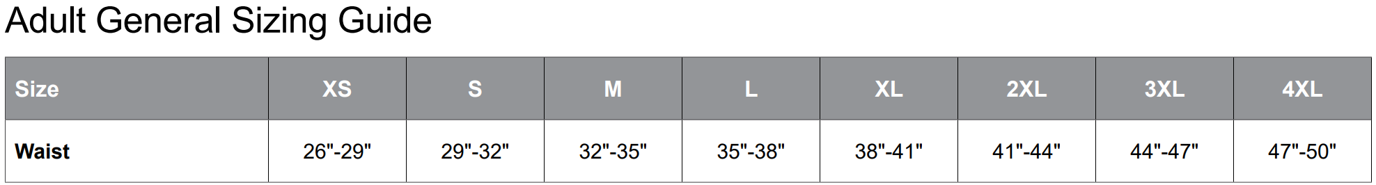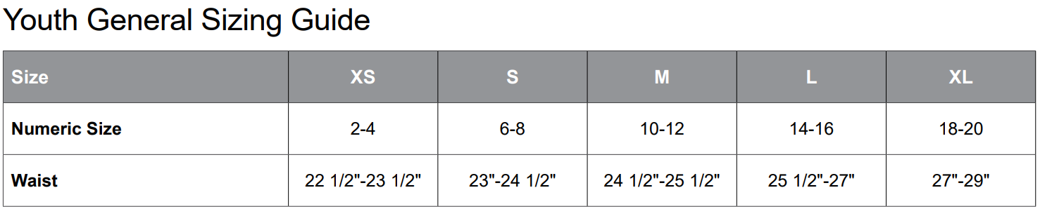 General Sizing: